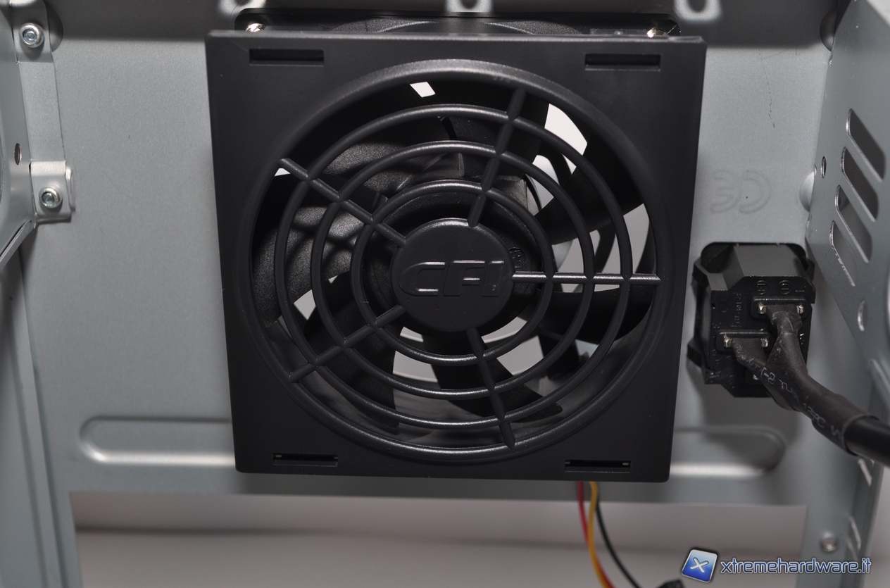 In fondo troviamo una ventola da 80mm protetta da una griglia anti-polvere che ha lo scopo di espellere l’aria calda generata dalla cpu all’esterno del case.