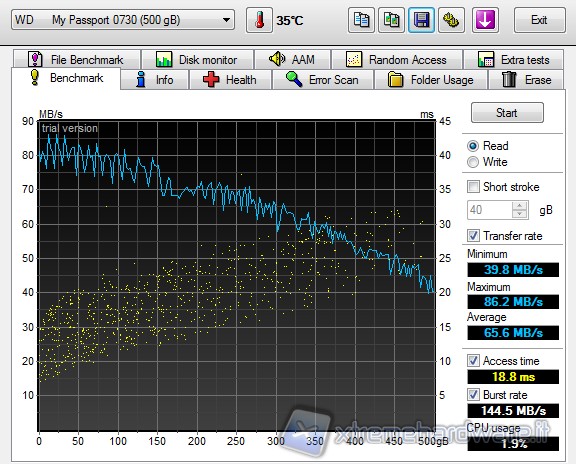 Il disco in oggetto è il WD My Passport da 500GB SATA 3.0, al cui interno è alloggiato un WD WD5000BEVT.