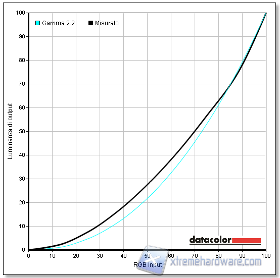 Con i valori di riferimento impostati come al solito, luminosità di 120 cd/mq, gamma di 2,2 e temperatura di 6500K, abbiamo ottenuto il seguente risultato abbassando la luminosità fino a 25, con Gamma 5 e temperatura Normale.