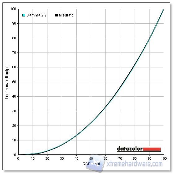 Soddisfacente è il range di luminosità che va da un minimo di 78 cd/mq a un massimo di 315 cd/mq. La copertura dello standard sRGB è del 100% e per quello Adobe dell’80%, mentre il valore di Gamma1, preset di default, ottiene un response perfetto (2,2), con temperatura del bianco di 6100K.