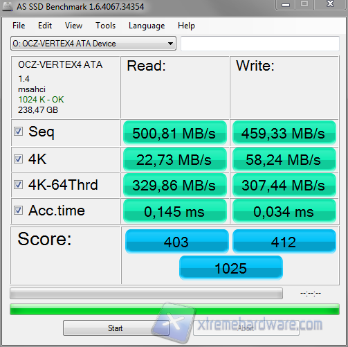 AS SSD Benchmark è un'altro benchmark gratuito studiato appositamente per SSD, effettua i suoi test sintetici senza adoperare la cache del sistema operativo che va ad influenzare pesantemente i risultati del Tranfer Rate, inoltre determina i tempi di accesso del drive sfruttando l'intera capacità del drive stesso, tutti i test vengono effettuati utilizzando dati non comprimibili.